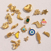 Vintage goudkleurige roestvrijstalen bedelsset, boho chic voor eclectische ontwerpen, kleurrijke edelstenen, dierenmotieven voor het maken van sieraden